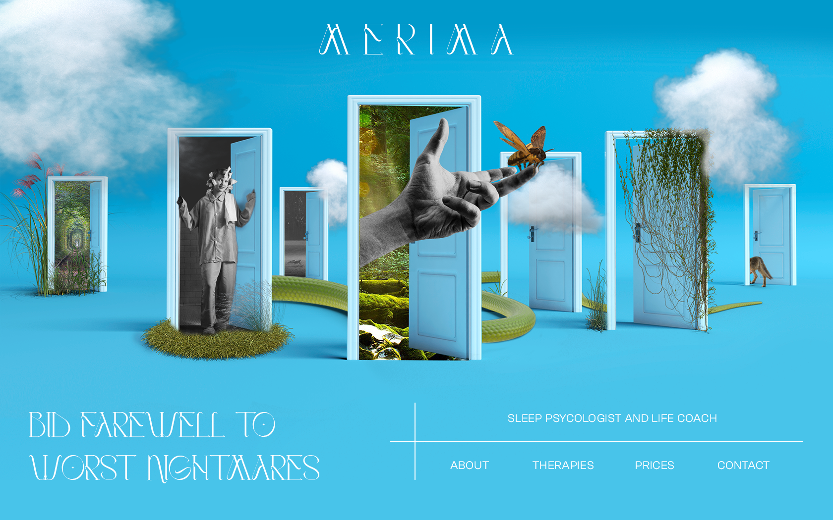 This is a personal branding project for a sleep psychologist and life coach using digital collage.